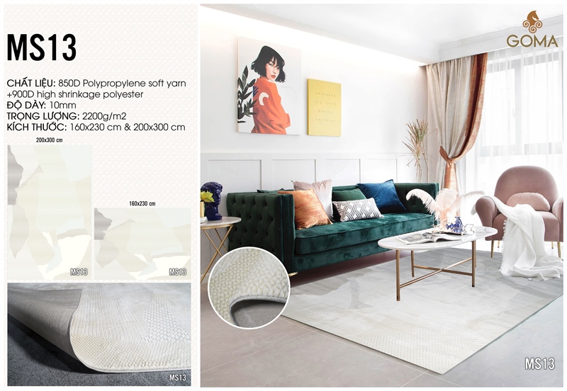 + Chất liệu : 850D polypropylene soft yarn +900D high shrinkage polyester