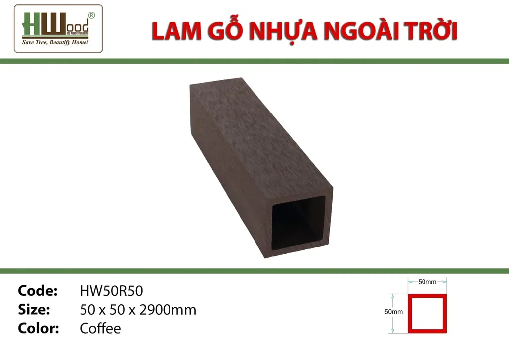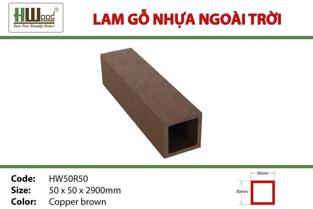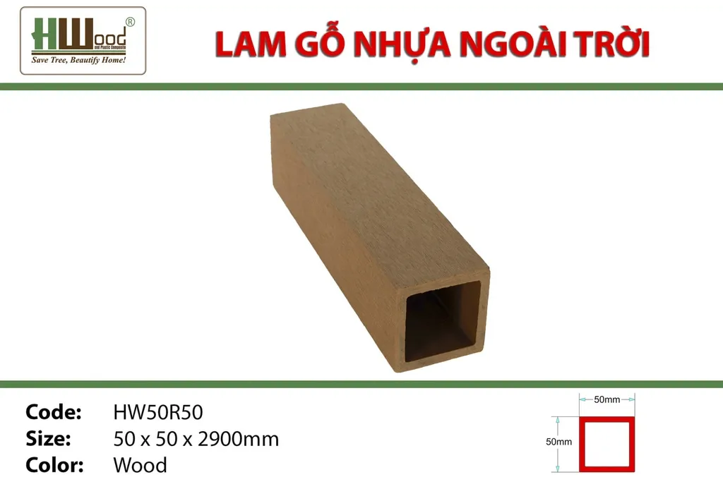 Thanh lam gỗ nhựa ngoài trời Hwood HW50R50