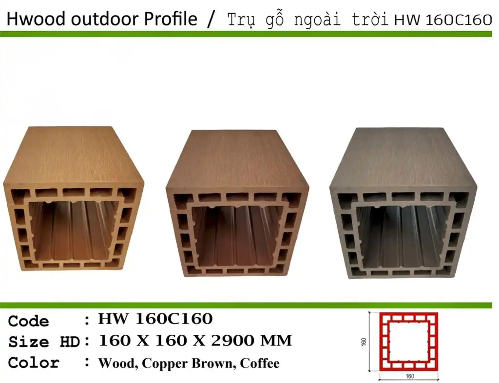 Trụ gỗ nhựa ngoài trời Hwood HW160C160